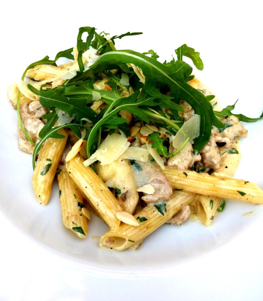 בחזרה למה שאכלנו, אני הזמנתי פסטה עם כמהין, לחי חזיר, שקדים, רוקט, שמנת ויין לבן – מושלמת!